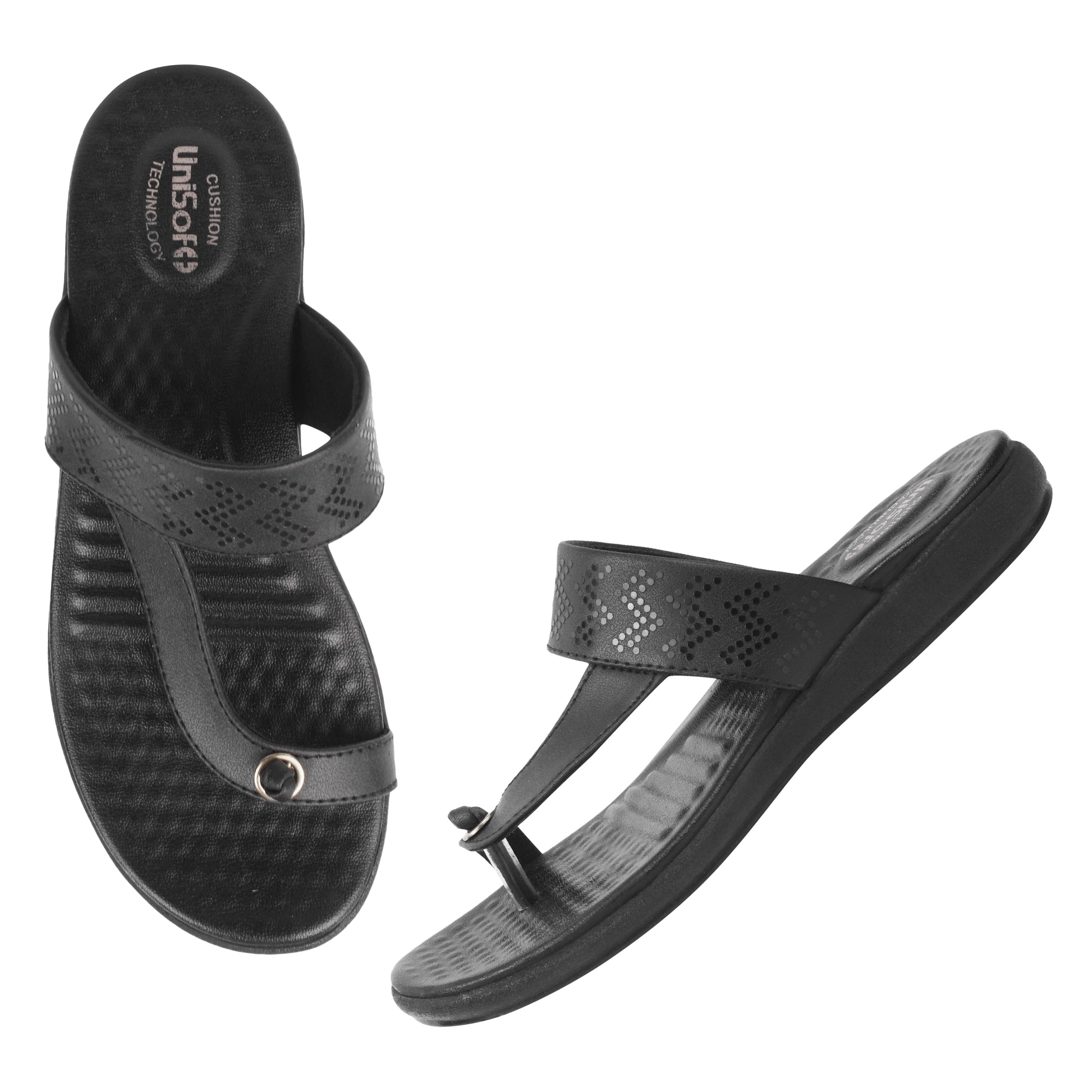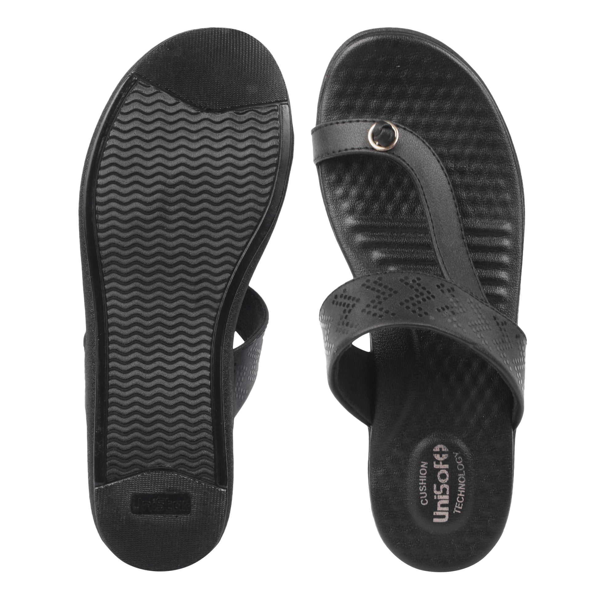 Unisoft Women’s Slippers combine style, comfort, and orthopedic support in one perfect package. Constructed with a durable polyurethane sole and a soft synthetic leather upper, these slippers feature a sleek black solid design with an open-toe, slip-on style that’s easy to wear and breathable. The medium arch support encourages natural foot movement and helps reduce pressure on sensitive areas, preventing common foot issues like corns and calluses. Designed especially for women facing diabetes, joint pain, or chronic foot discomfort, the plush insoles provide excellent cushioning and relieve pain in the knees, ankles, legs, and back. Available in sizes 4 to 9, these slippers offer a comfortable and secure fit for everyday use. Maintenance is simple—just wipe them clean with a dry cloth to keep them looking new. Lightweight yet durable, Unisoft slippers are built to last and ideal for casual outings or relaxing at home. With a thoughtful design focused on foot health and lasting comfort, these slippers provide reliable support and stylish appeal with every step.